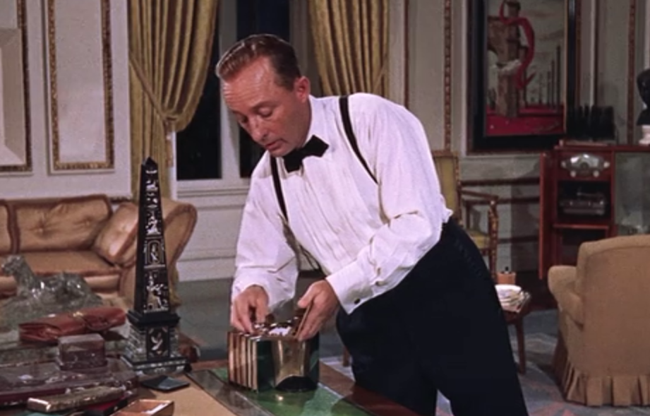 In High Society, the musical remake of The Philadelphia Story starring Bing and his buddy Louis, Crosby performs an elaborate scene getting ready for a party wherein he fills his cigarette case with a few cigs from another part of the box....quite likely, joints. Louis opens the picture with a Calypso version of the title song, where he puffs away at a cigarette and pantomimes rolling a joint. While in The Philadelphia Story the heroine has left her husband (here played by Bing) because of his drinking, in High Society she does so because he has left behind his "serious" musical career for jazz. It was the next movie Crosby made with Grace Kelly after The Country Girl, where he should have won the Oscar for his honest portrayal of an alcoholic.