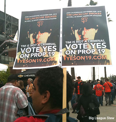 November 6 - SF Giants pitching ace and reigning Cy Young winner Tim Lincecum is pulled over with a small amount of pot in his car. Lincecum subsequently wins a second Cy Young award, just after he apologizes for his actions.