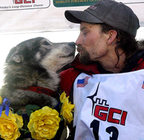 Just before the Sunday start of the 38th Iditarod Trail Sled Dog Race in Alaska, it was announced that for the first time since 1984, when the Iditarod implemented drug and alcohol testing, mushers will be tested for marijuana. The new policy is thought to be aimed at last year's reigning champ and three-time champion overall, Lance Mackey (pictured left, with team member).